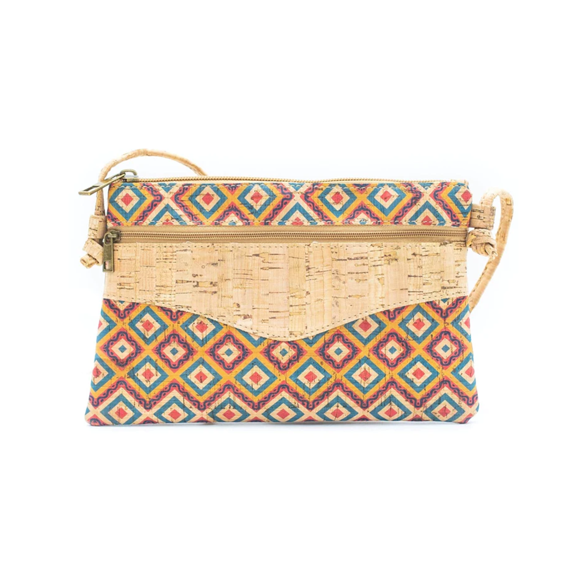 Τσάντα χιαστή από φυσικό φελλό με υπέροχα σχέδια σε μπλε αποχρώσεις, κατάλληλη για κάθε εποχή.